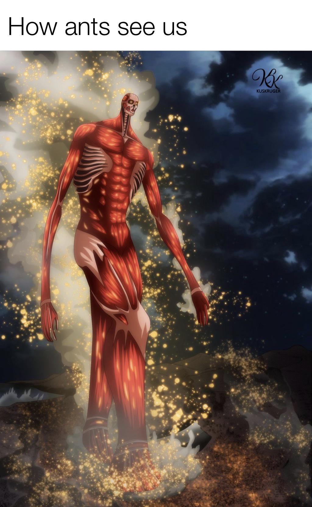 If you find this site serviceableness, please support us by sharing this posts to your preference social media accounts like Facebook, Instagram and so on or you can also Download this blog page with the title Colossal Titan Memes by using Ctrl + D for gadgets a laptop with a Windows operating system or Command + D for laptops with an Apple operating system. If you use a smartphone, you can also use the drawer menu of the browser you are using. Whether it's a Windows, Mac, iOS or Android operating system, you will still be able to bookmark this site.